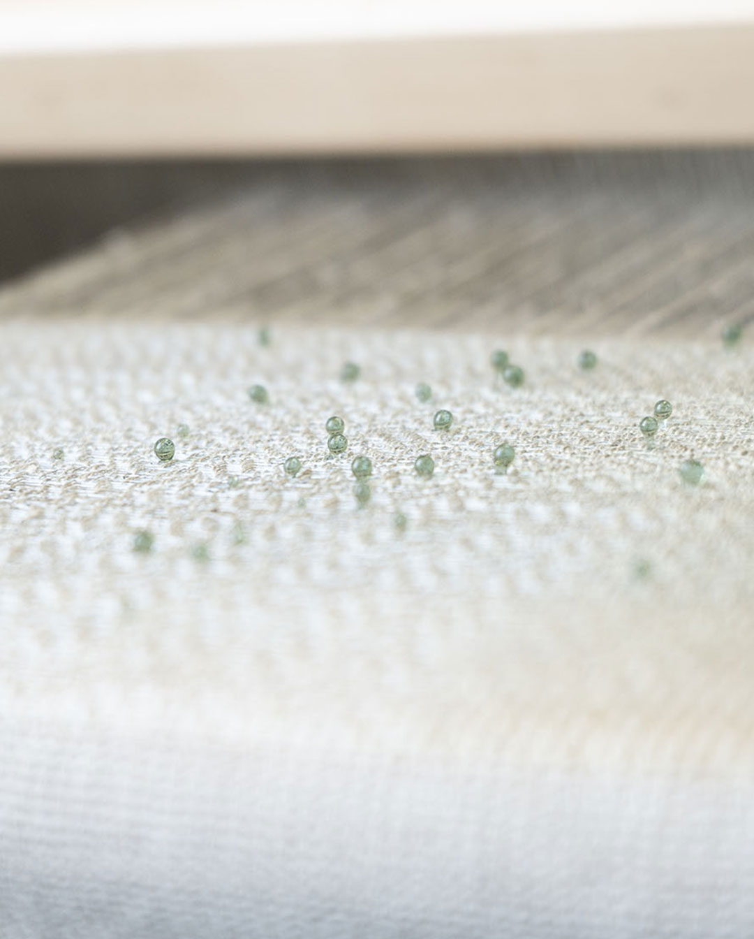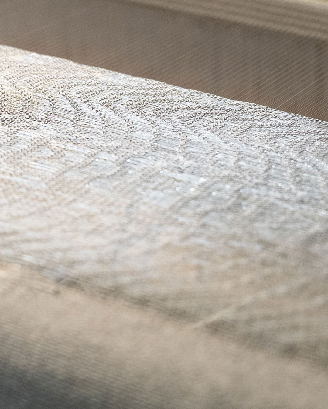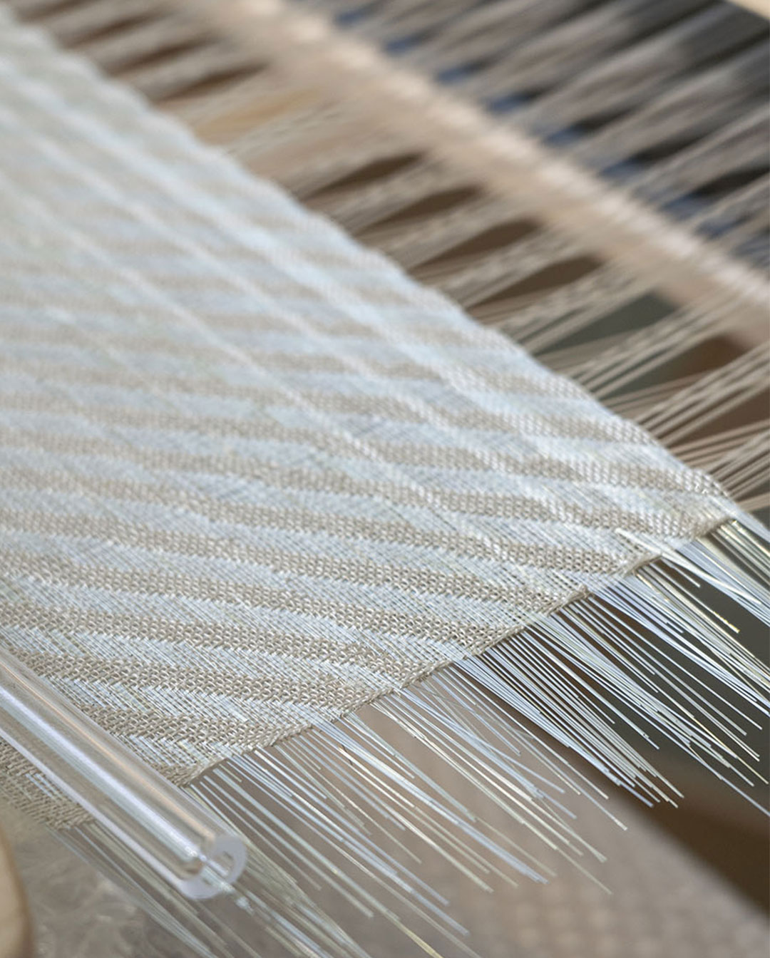 Their collaboration illustrates the infinite capacity of weaving and glass to invent together a new material with multiple motifs. Eager to cross-fertilize their skills, the textile creator and the designer naturally began to work together on this new material. They began their trials and discovered a shared universe between opacity and transparency, work on reflection, structure and suppleness, strongly enriched around the values in which they find themselves around bio-sourced materials. So, since 2018, the two designers have been working in dialogue to come up with the first pieces based on their techniques.