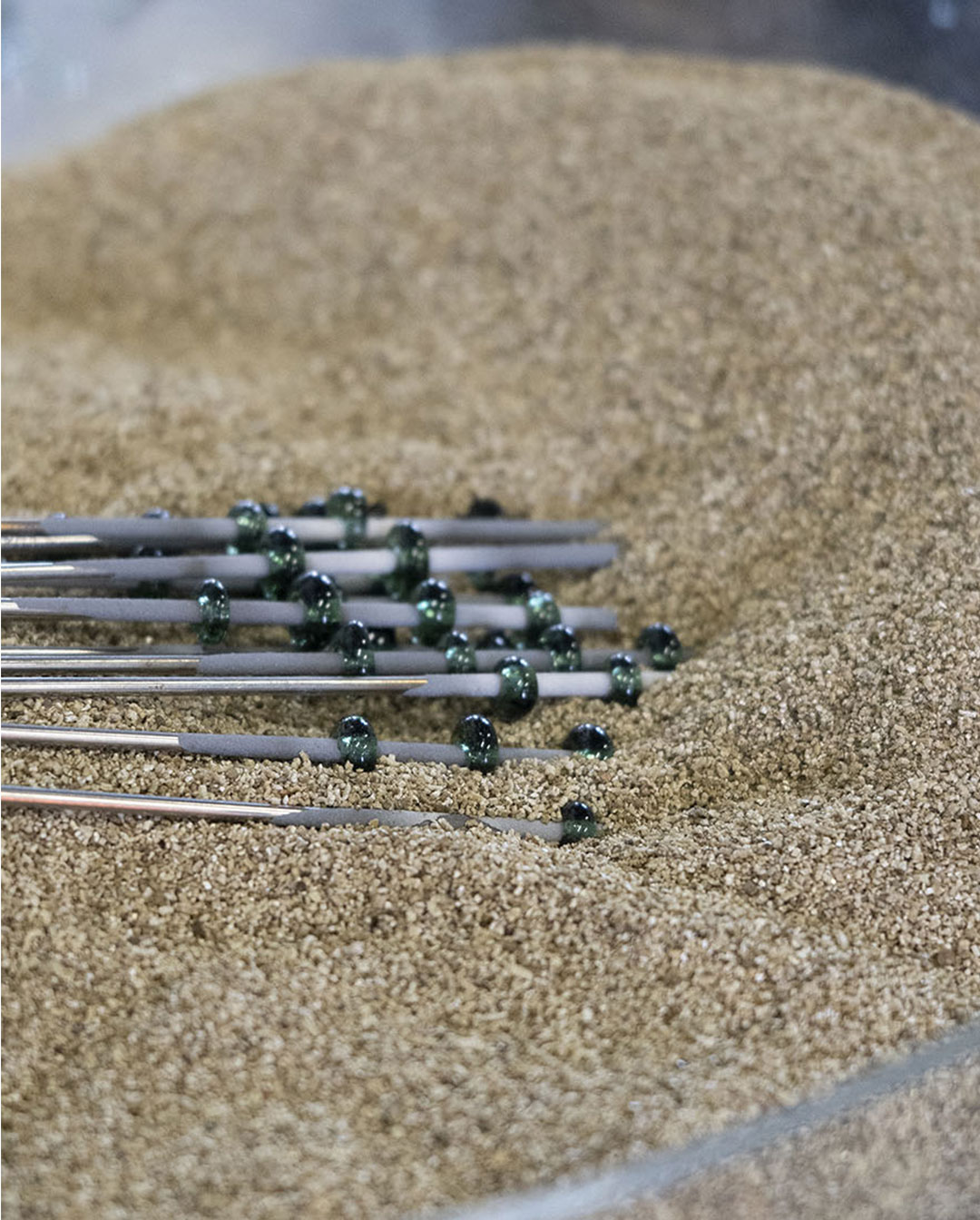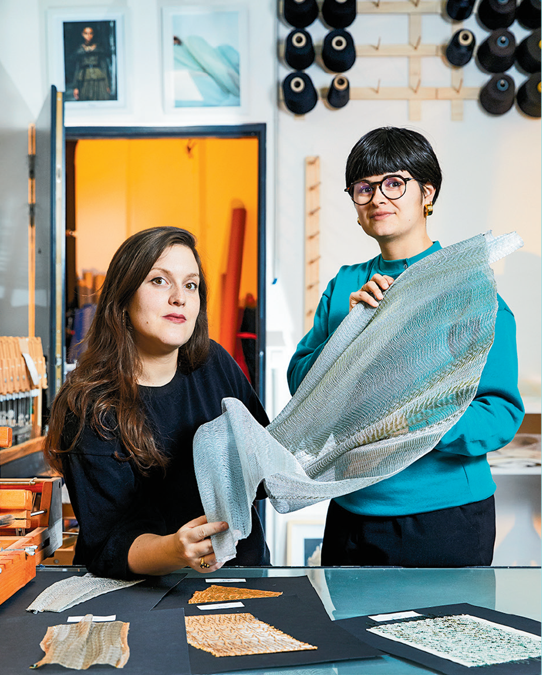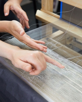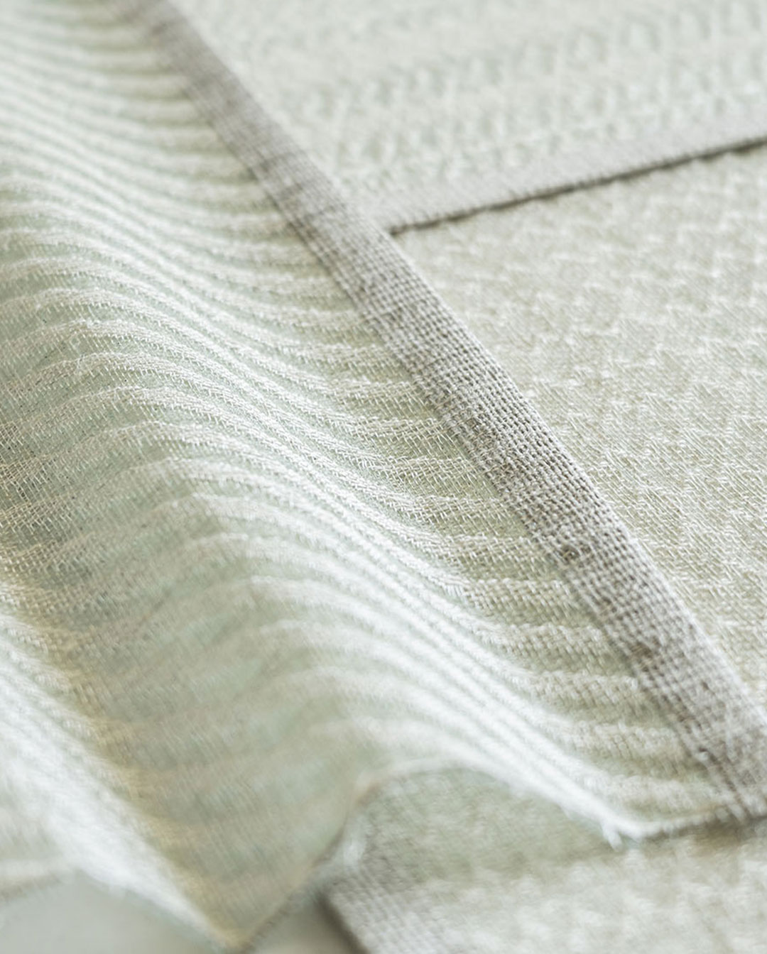 Their collaboration illustrates the infinite capacity of weaving and glass to invent together a new material with multiple motifs. Eager to cross-fertilize their skills, the textile creator and the designer naturally began to work together on this new material. They began their trials and discovered a shared universe between opacity and transparency, work on reflection, structure and suppleness, strongly enriched around the values in which they find themselves around bio-sourced materials. So, since 2018, the two designers have been working in dialogue to come up with the first pieces based on their techniques.
